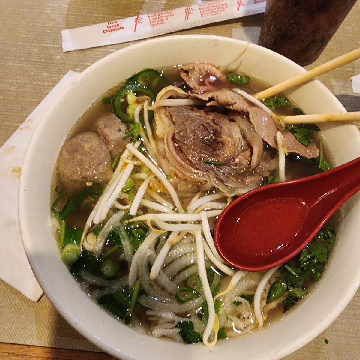 The menu centers on classic pho varieties, with the rare steak and well-done brisket versions getting particular attention. Beyond the soups, there’s a solid selection of complementary items like fresh and fried spring rolls, shaken beef salad, and grilled pork over rice, all of which showcase straightforward, familiar Vietnamese flavors done reliably well. Drinks like Thai tea and iced coffee add a traditional touch, fitting for those who enjoy their meal with a bit of sweetness or caffeine kick.